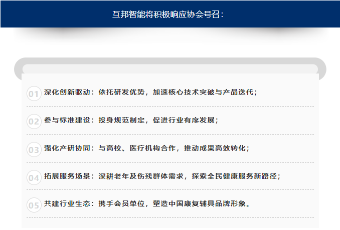 互邦智能將以此次大會為新起點,在協(xié)會新一屆領(lǐng)導(dǎo)班子引領(lǐng)下,切實履行會員責(zé)任,為破解行業(yè)發(fā)展難題、提升中國康復(fù)輔助器具產(chǎn)業(yè)競爭力貢獻(xiàn)力量。
